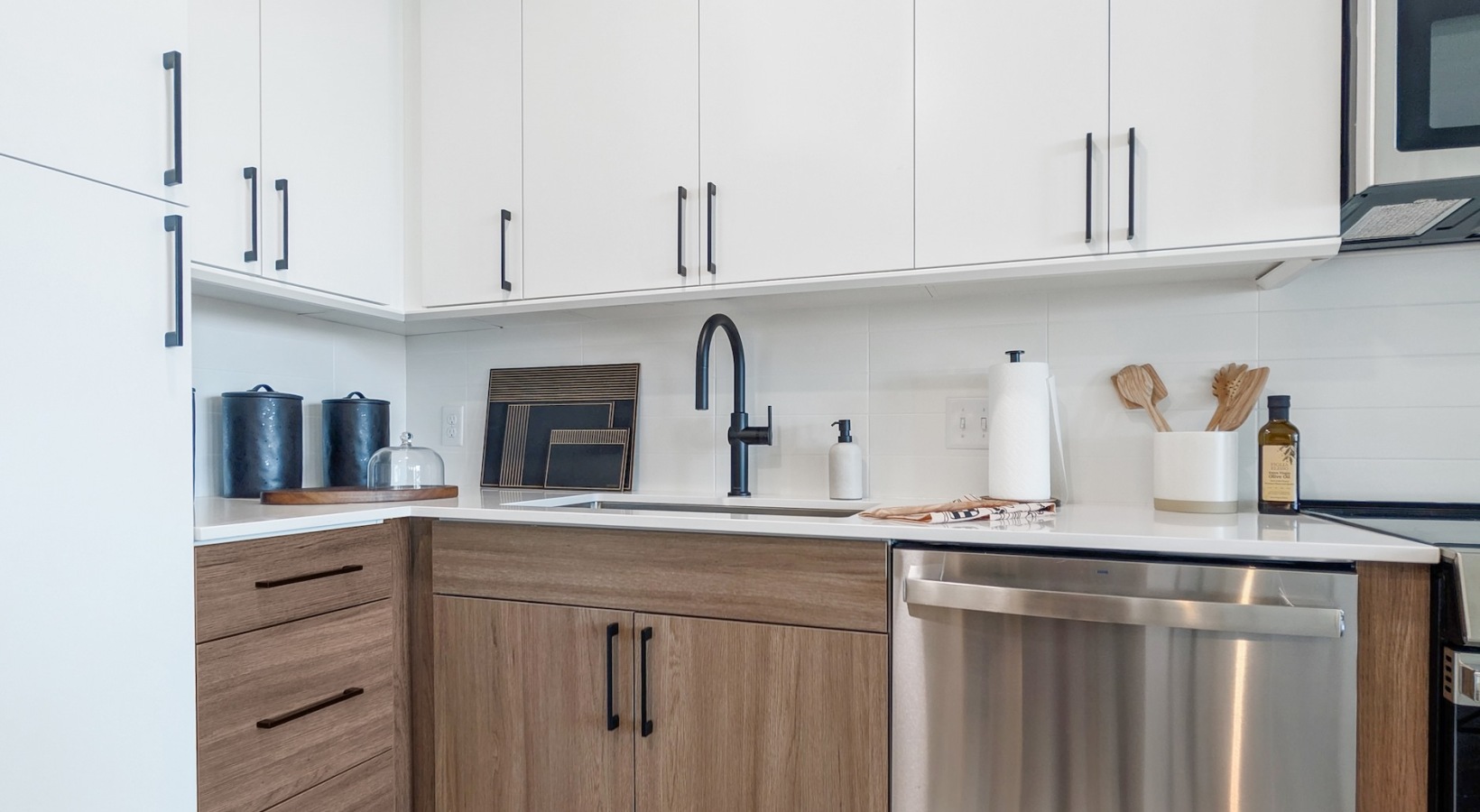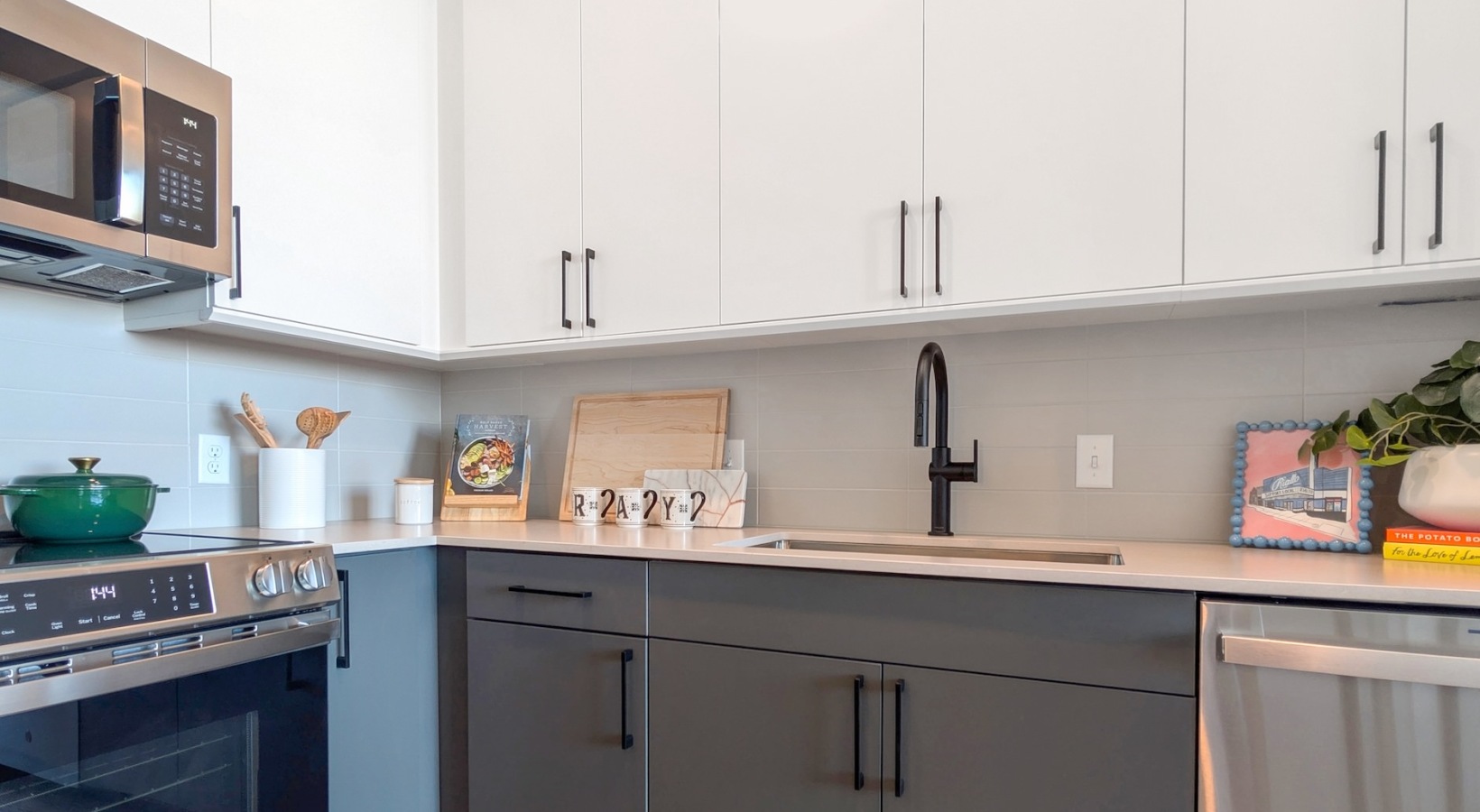 • kitchen with two-tone cabinetry and stainless steel appliances